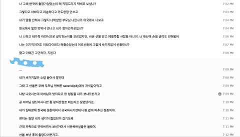 처음엔 제가 한국문화를 잘 몰라서 그사람에게 잘못할수도 있단 생각에 사귀는게 쉽지 않았지만그사람은 저에게 너무나도 따듯하게, 또 절 이해해주려고 많이 노력을 했습니다.