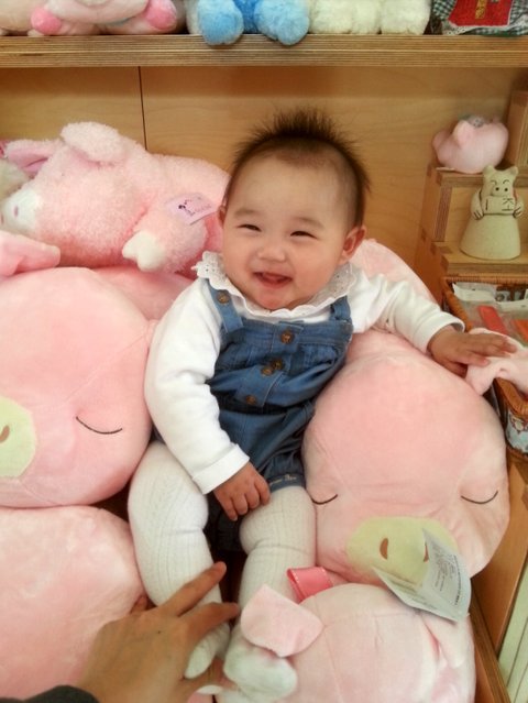 저희 외할머니댁이 이천이예요~ 이천에 놀러갔다가 돼지농장에 갔는데 인형들이 있길래