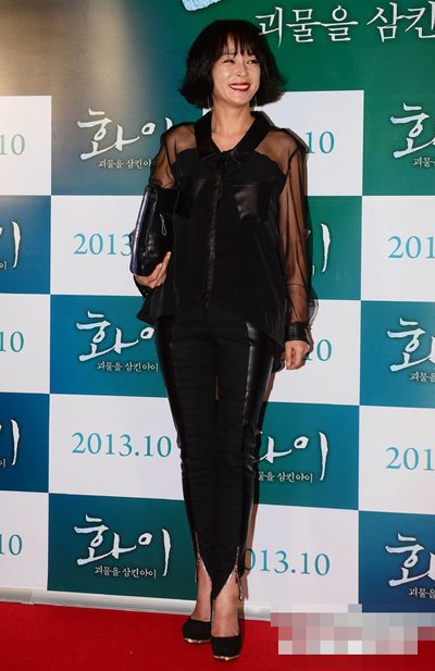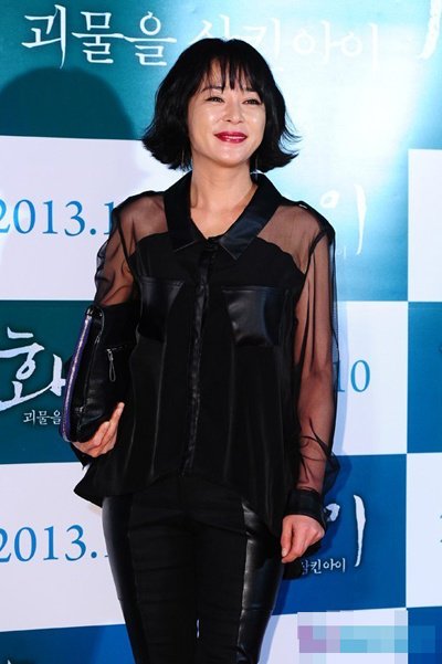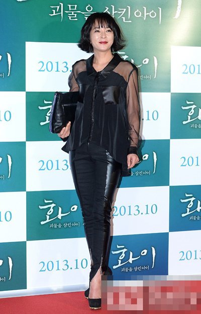 지난주 영화 시사회에 가죽 스키니에 시스루 블라우스를 입은 조민수