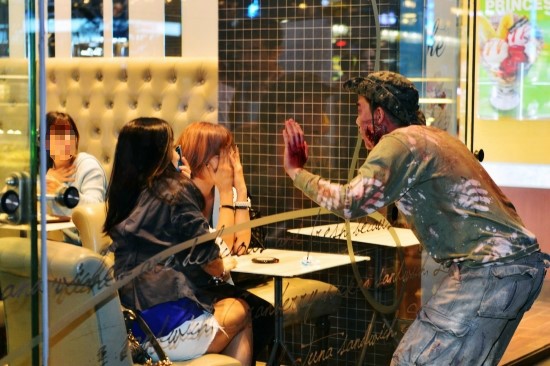 이 좀비들은 사람들이 밀집되어있는 이태원 가로수길, 강남역에서 거리 퍼포먼스를 진행했는데요![]()