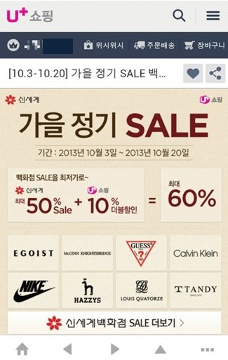 그래서 U+쇼핑 이벤트로 신세계 백화점 기획전, 백화점 정기세일을 할때면