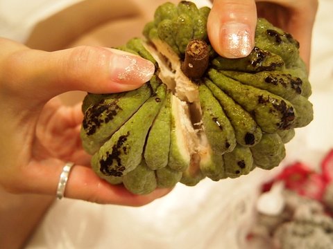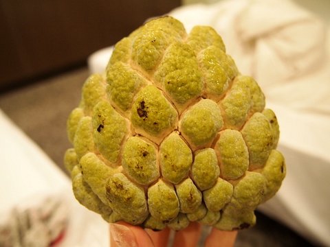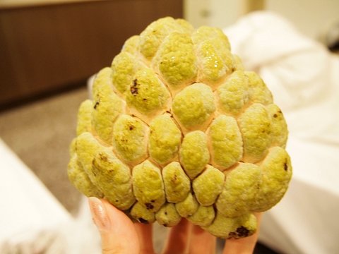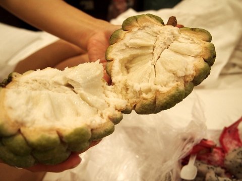 떠나기 전에 전날 까르푸에서 구입한 과일 맛보기