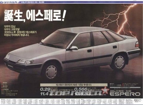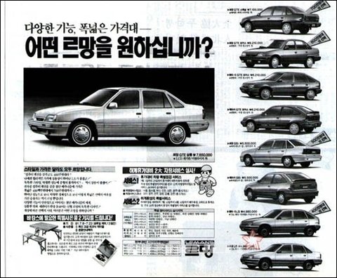 포니, 르망, 에스페로, 엘란 등 추억의 자동차 TOP 7 이라고 합니다.