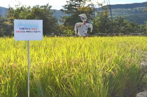 다랭이와 함께 자라나는 무공해 황금빛 이천 쌀이 자라는 작은 논도 있고요