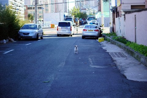 집이 근처인가 잠시 혼자 마실 나온 강아지인가?