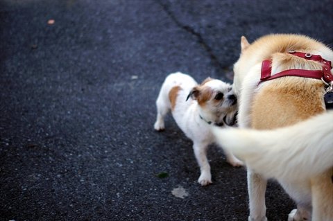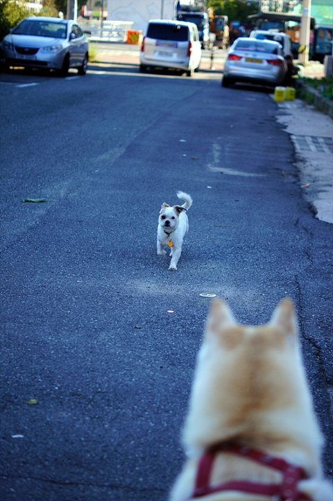 강아지들 데리고 산책 많이 나오시기에.. 여기저기 친구들 냄새가 나서 심바는 킁킁대기 바빠요