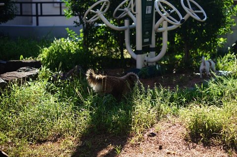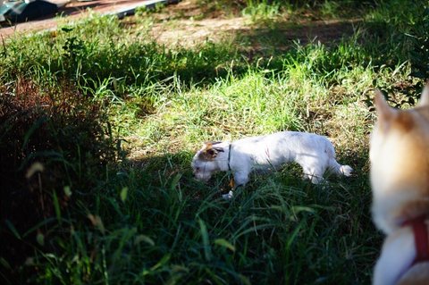 근처 잔디에서 냄새도 맡고