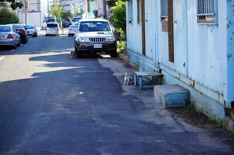 동네 고물상에서 기르는 멍멍이가 다가왔어요.