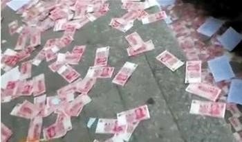 그런데 실제 중국에서 그런 일이 일어났습니다. 지난 7일 오전 9시쯤 중국 남부 후난성의 성도 창샤시의 한 대로에서 사람들은 하늘 가득 뭔가 떨어지는 것을 목격했습니다. 비가 아니었습니다. 종이였습니다. 팸플릿인가 했는데 현금, 지폐였습니다. 그것도 중국의 최고액권인 100위안(우리 돈 약 1만7천500원)이었습니다.