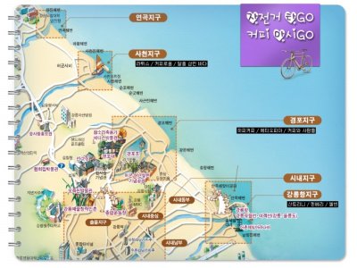 ' 자전거 타 go 커피 마시 go ' 행사이름처럼 자전거뿐만아니라 커피도 마실수있게 커피쿠폰도 증정하고있었어요. Eco mind를 가진 커피숍 9곳이 참가하는 행사로 자전거 대여 시 받은 쿠폰을 내면 커피(테이크아웃 아메리카노) 한잔과 교환가능해요. (강릉항(안목항) 지구 3곳 / 경포지구 3곳 / 사천지구 3곳으로 나눠져 강릉항으로 떠날지 사천지구로 떠날지 미리 목표루트 정하기.)
