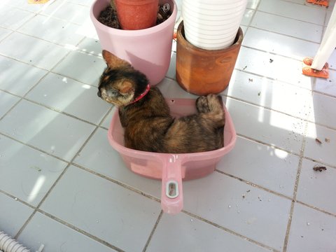베란다 청소 하려고 했더니 저기 쏙 들어가서 앉아있는 니니
