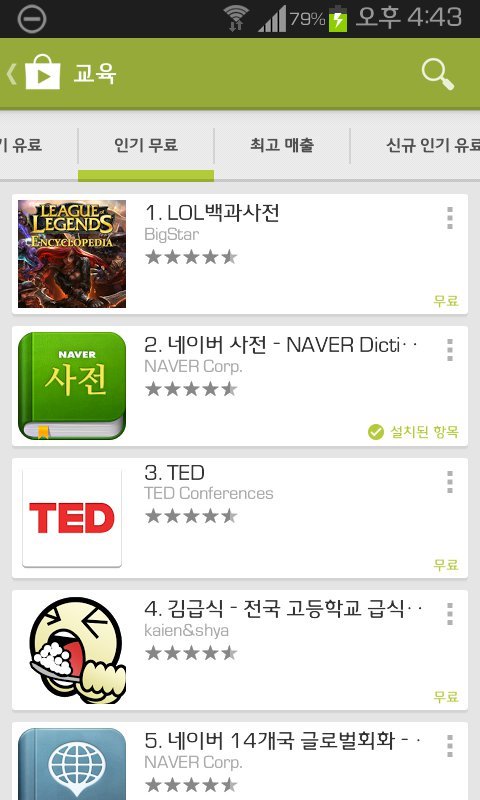 한국청소년들이 가장 많이 받은 앱 BEST5 .jpg