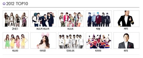 작년 Top10은 2NE1부터 허각씨까지 개성넘치는 가수들로 가득했어요~