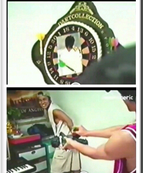 숙소 공개하는데 민봉 사진을 다트에 놓고 바늘로 찍고 인형 엉덩이 바늘로 찍어서 저주놀이함ㅋㅋ