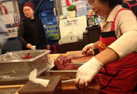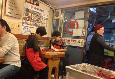 들어가면 아주머니들이 고기 썰고계심;;;;;