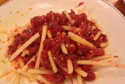 난 육회고기가 이렇게 시뻘건 덩어리인줄은 몰랐네;;;