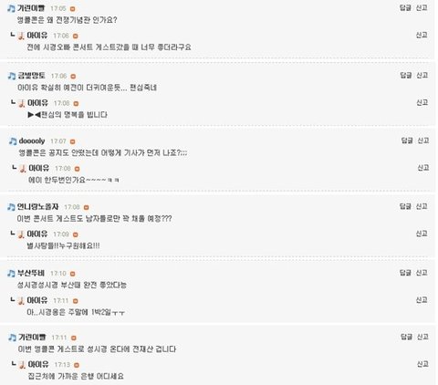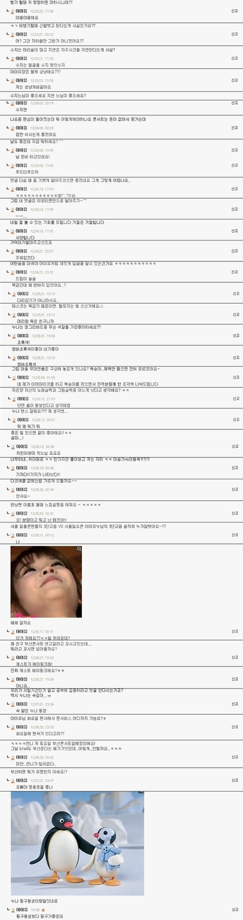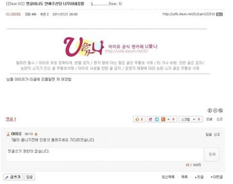 벌써 4탄이네요 ..ㅎㅎ 그리고 요번건 진짜 많이 기네요 ㅎㅎ 그래도 끝까지 읽어주셔서 감사합니다~~~^^아이유언니가 자주 거의 맨날 팬카페에 방문하시고 댓글도 많이 달아주셔서 이것보다 훨~신 많지만..너무 많아서 다 가져오진못햇어요..ㅎㅎ 그래도 재밋게 봐주세요 ~