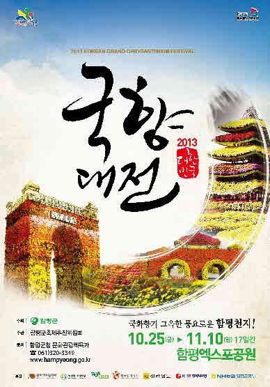 2013 대한민국 국향대전을 10월 25일부터 11월 10일까지 17일간 함평엑스포공원에서 개최합니다.