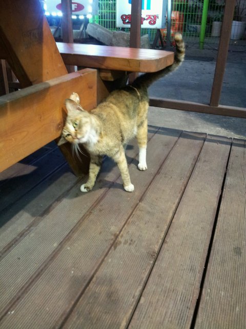 부모님가게에서 밥을 챙겨주고있는 길냥이가있어요 편의상 갈색이라고 할께요!! 엄마께서 가게주변을 떠돌던 갈색이가 불쌍해 몇번 사료를 가져다 준게 인연이되어 지금 벌써 1년반째 오고있어요~하루 세번 혹은 두번!