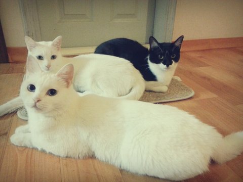 그리고 두세달뒤인 1주일전!! 또!!!!!!아깽이(생후2달정도) 두마리를 데리고 왔어요!!!!!!!!!!!!자기랑 똑닮은 아이한마리랑 아빠를 닮았는지....흰양말 신은 아이랑!!!!!!!!