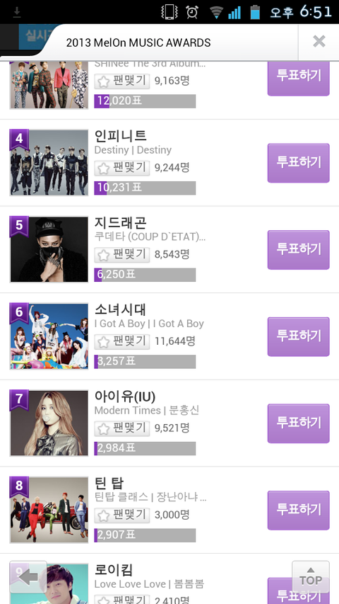 소녀시대랑 별로 표차이 심하게 안남;;