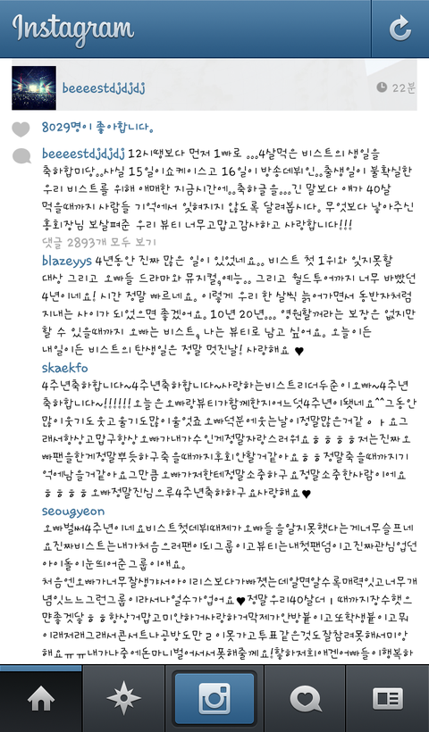 4년동안뷰티들과비스트,힘든일도많았지만뷰티랑비스트서로많이아끼고사랑하면서잘활동한거같아요.