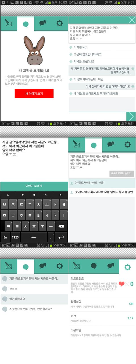 자신이 가진 고민에 대해서 이야기를 하는 Donkear라는 이름의 앱이예요