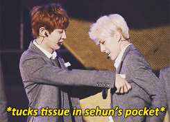 세훈이에게 티슈로 장난치는 찬열이