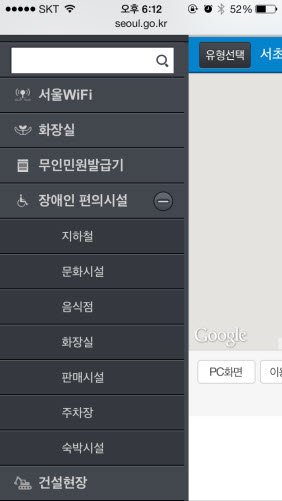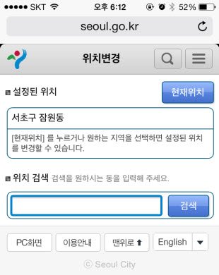 폰에서 모바일서울(http://m.seoul.go.kr) 들어가면