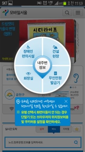 지금 모바일서울(http://m.seoul.go.kr)에 접속해서 체험해보세요!~ 신기해요!