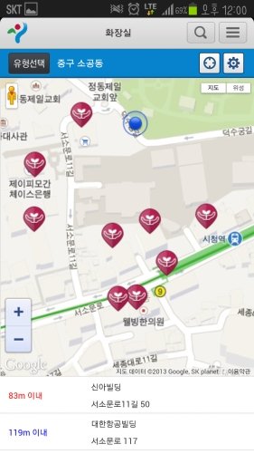 정말 제 주변에 가까운 화장실이 지도에 표시됩니다!