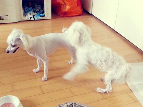 (애기랑 같이 있는 모습 찍으려는데 갑자기 애기가 꼬리를 들었다는............ㅠㅠ)