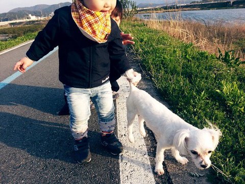 산책중 갑자기 꼬리를 들리는 봉변을 당해도 큰소리 한 번 안내는 착한 짱아~ㅎㅎ