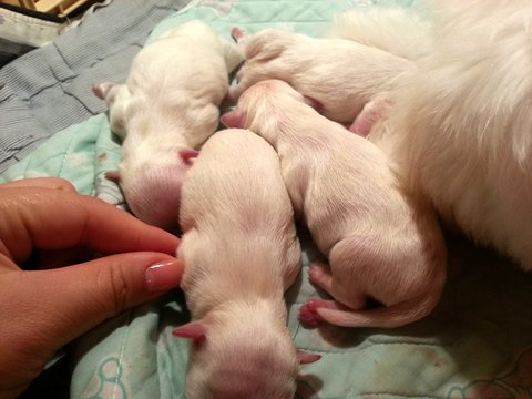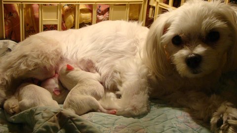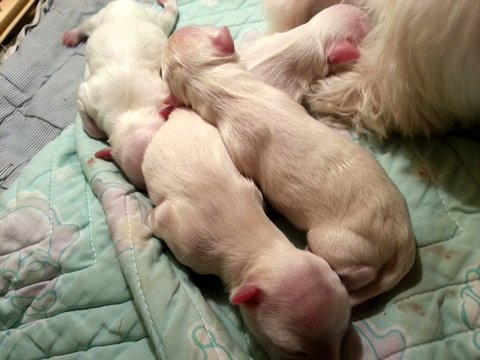 제가 키우는 3살 말티즈 짱아가 10월 15일 저녁에 여아 4마리를 출산했답니다 ㅎㅎㅎ