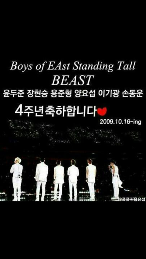비스트오빠들네살된거추카포카♥지금학생이라..그것도중2라..물질적인건못해줘도항상응원하고바라볼게요♥데뷔초때부터순탄한게흘러온시간들은아니었지만, 앞으론뷰티랑비스트한테좋은일만있길바랄게요♥뷰티&비스트고맙고사랑해요♥♥♥