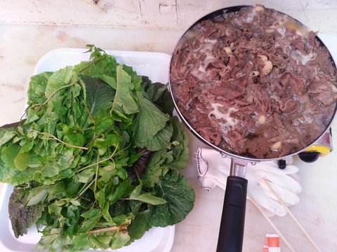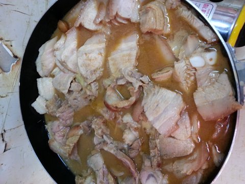 가계에서 보쌈해먹으려 끓이다 넘쳐서 오겹을 일딴 썰고