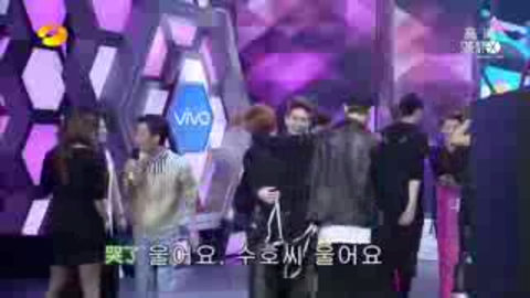 수호:무서워서 눈물이난게 아니라 제가 엑소 사랑하자!하고떨어졌을때.. 멤버들이 저를 감싸안고 있는모습을 보고 울컥했어요