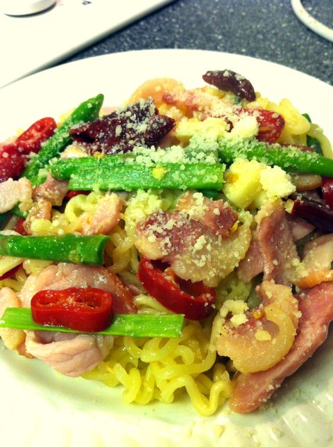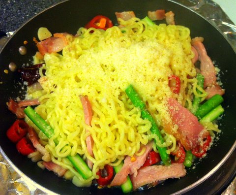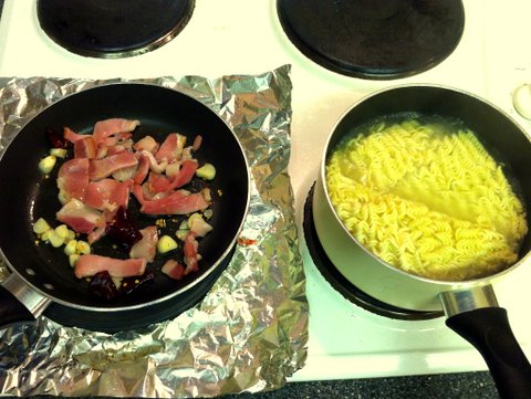 간단 맥주 안주 - 베이컨 라면 볶음