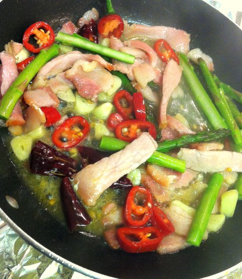생고추와 남은 아스파라거스 투입.