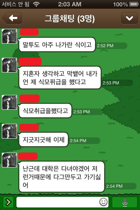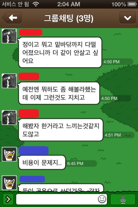 제가 최근 핸드폰 충전기가 고장나서 근 2주간 카톡이 못했는데,오늘 친구네 집에 가서 충전을 하고 왔습니다. 그리고 그동안 왔던 카톡을 봤는데 정말 가관이네요.