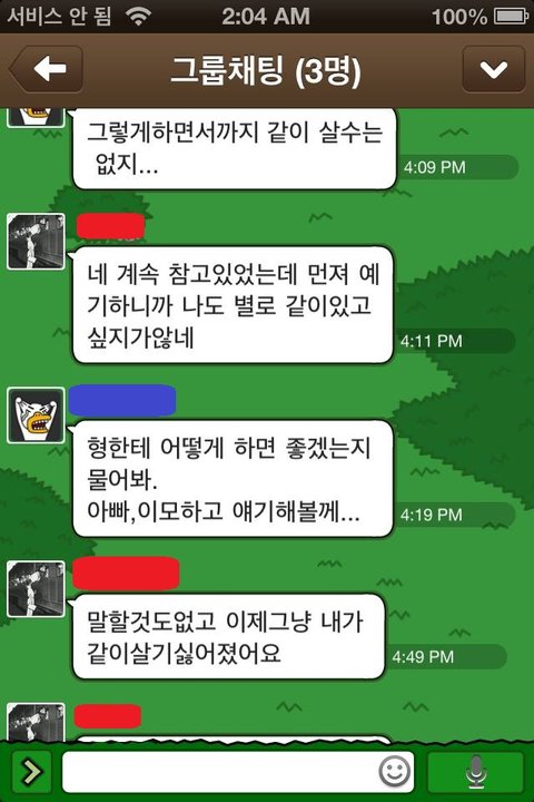 보시다시피 빨간색이 사촌동생이고 파란색이 이모입니다. 보는 순간 어이가 없더군요. 누가 정을 운운하는지도 모르겠구요.
