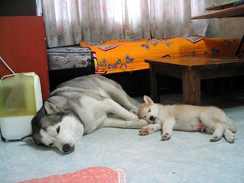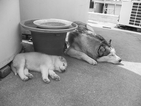 모범을 보이는 루키 덕분에 심바는 너무도 쉽게 배변훈련과,, 기본적인 복종훈련을 익혔어요