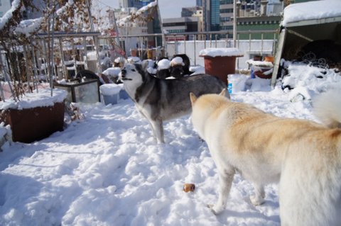 루키가 떠난 다음날... 루키가 그리도 좋아하던 눈이 펑펑 내렸어요...