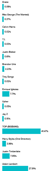 지금 퓨즈티비에서 진행하는 세계에서 가장 섹시한 남자 뮤지션에서 1위를 달리고 잇는 탑님..