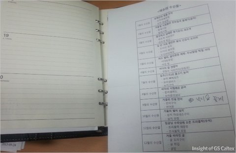 ‘조 대리 수첩에 곱게 끼어있는 여수의 계절별 수산물 리스트’