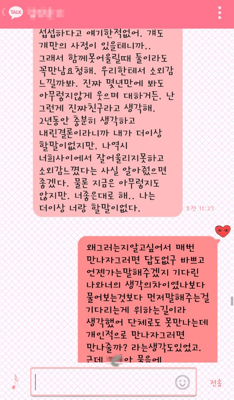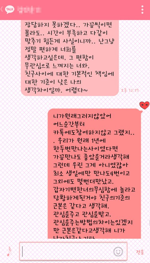 밑은 C와의 카톡이예요. 좀 긴데....... ㅠㅠㅠ 끝까지 읽어주세용