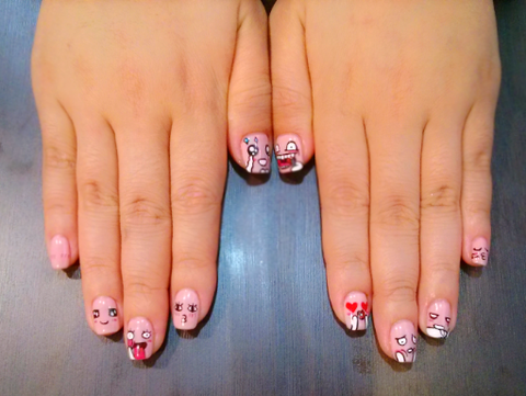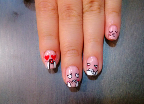 저는 광주사는 21살 네일아티스트에요!! 같이 일하는 친구손에 뭘해줄까하다가 전에 팁에만들어둔 카카오톡이모티콘을 그려줄까?했는데 어쩌다보니 이렇게.... 귀여워서 판에도한번... 제눈에만 귀엽나요ㅠㅠ