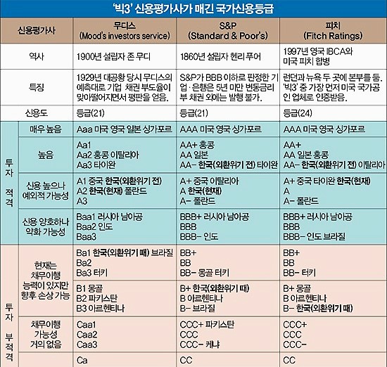 3대 국제신용평가사 의 대한민국 신용등급 상승 조정 평가