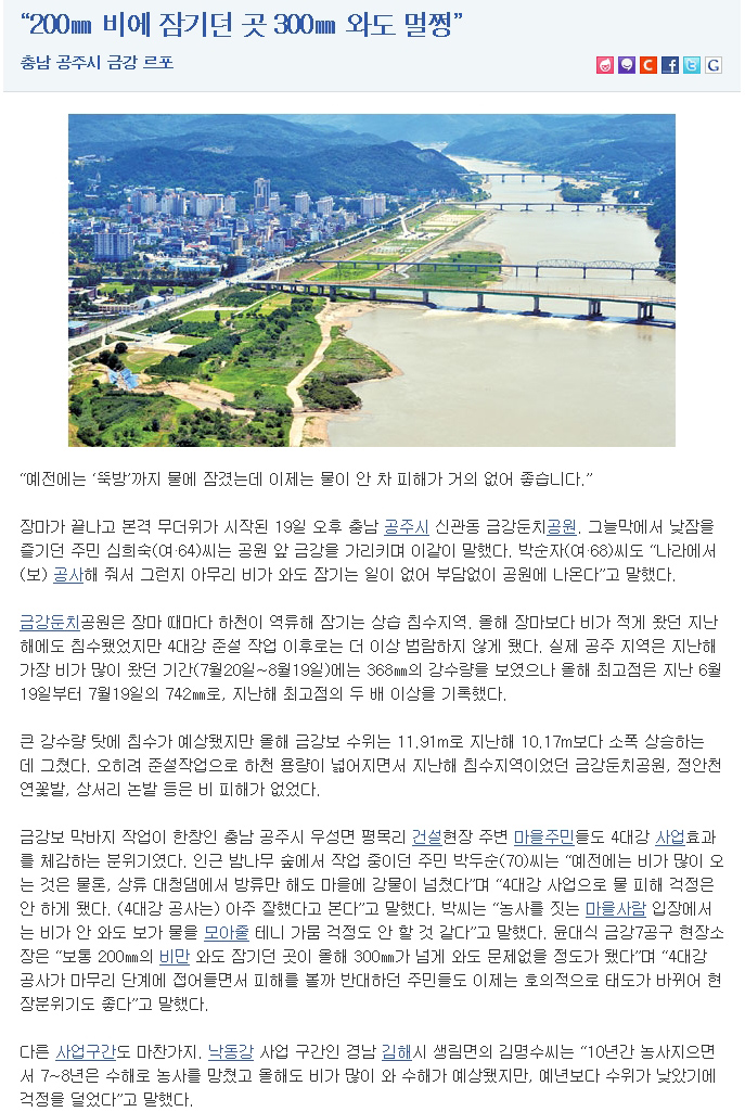 4대강 성공적으로 마무리 OECD “4대강, 녹색성장 선도 사례” http://www.munhwa.com/news/view.html?no=2012030801070227104002 아직도 의심하는 4대강 쓰레기 취급하는 종자들을 위해...