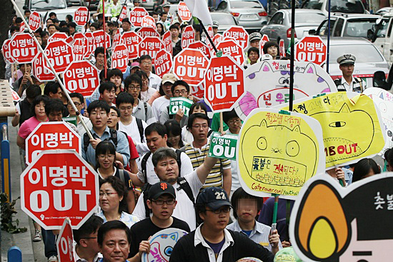 그는 임기 초기에 광우병 선동으로 인해 꼬이기 시작했고